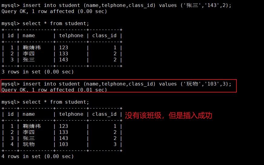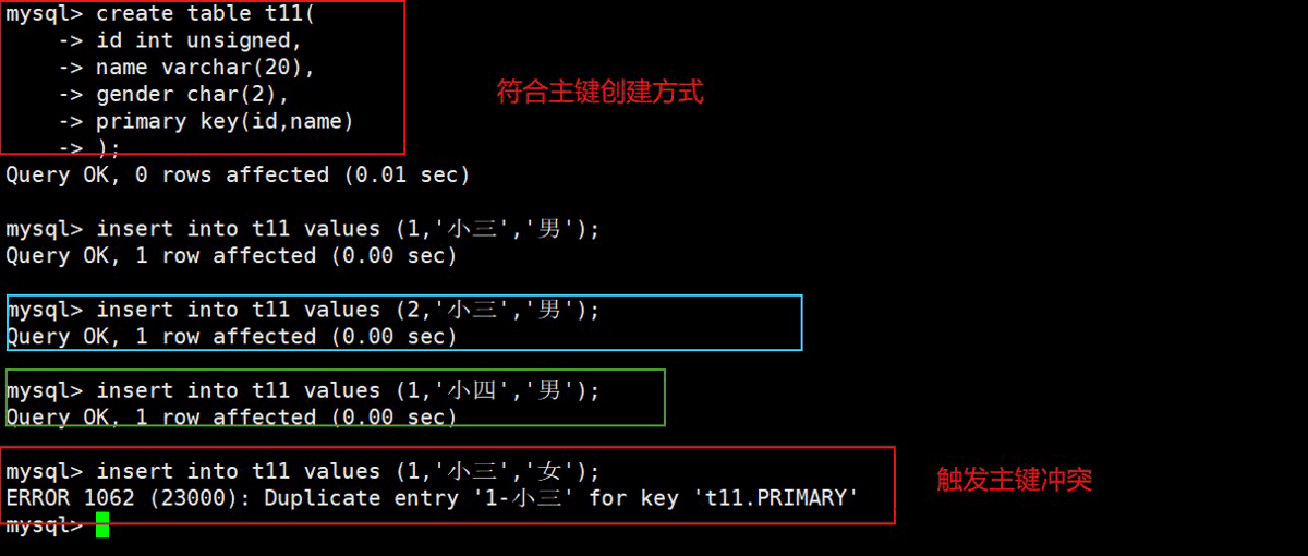 注意:复合主键只有设置有主键的那几列同时和过往的数据相同时就会产生主键冲突;