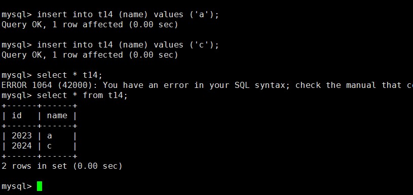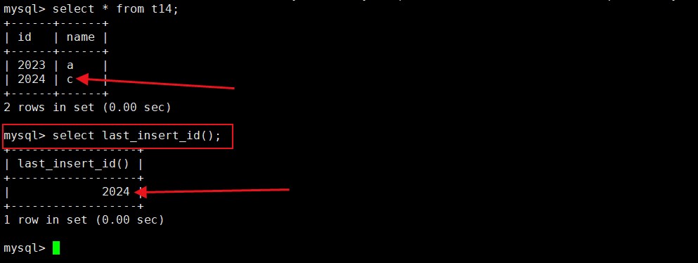 查看最后一次的插入的自增长的值: