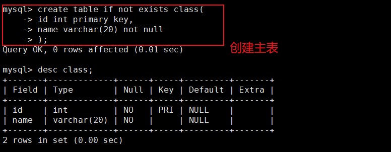 主键:primary key用来唯一的约束该字段里面的数据,不能重复,不能为空,一张表中最多只能有一个主键;主键所在的列通常是整数类型。