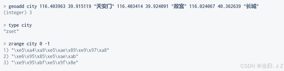 geoadd 将指定的地理空间位置(纬度、经度、名称)添加到指定的key中 geopos 从key里返回所有给定位置元素的位置(经度和纬度) geodist 返回两个给定位置之间的距离 georadius 以给定的经纬度为中心, 找出某一半径内的元素 georadiusbymember 找出位于指定范围内的元素,中心点是由给定的位置元素决定 geohash 返回一个或多个位置元素的 geohash 表示