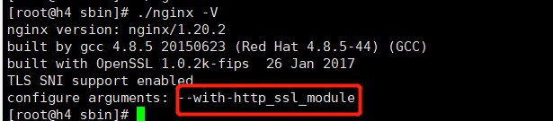 ##配置参数(configure arguments)可查看编译时额外加载的nginx模块,重新安装及编译时不要漏