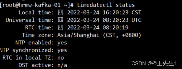 timedatectl status ##ntp enabled 开启ntp ##ntp synchronized 开启时间同步