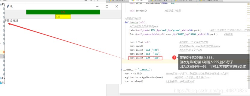 text.insert('1.8', '333') #此处指定位置插入成功