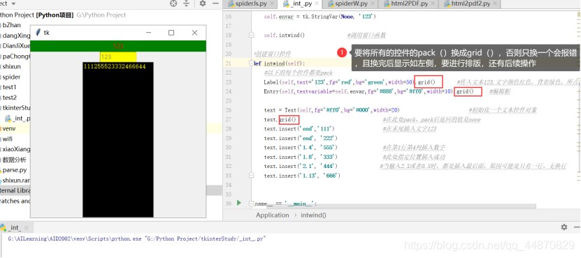 这里使用grid函数,而不是使用pack函数了。