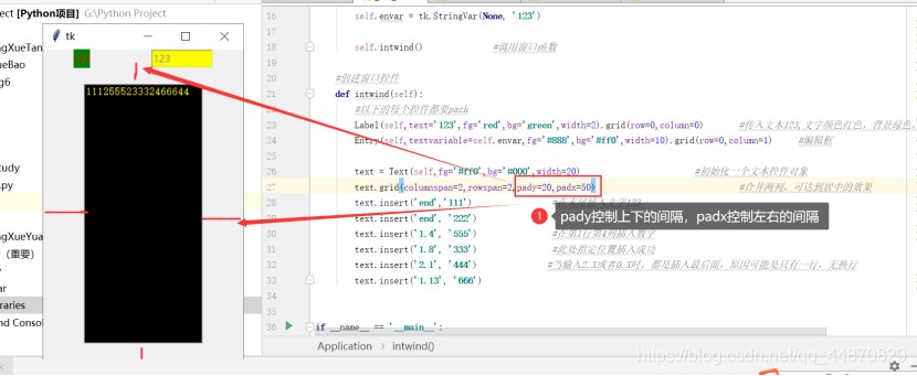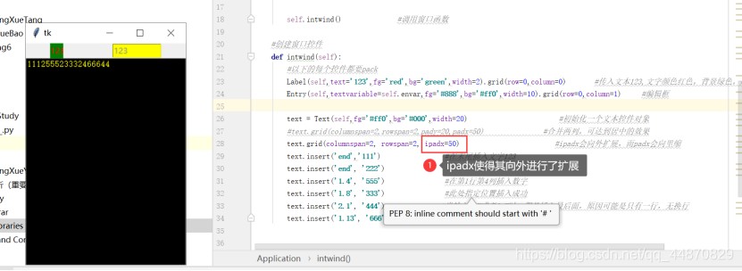 text.grid(columnspan=2, rowspan=2, ipadx=50) #ipadx会向外扩展,而padx会向里缩