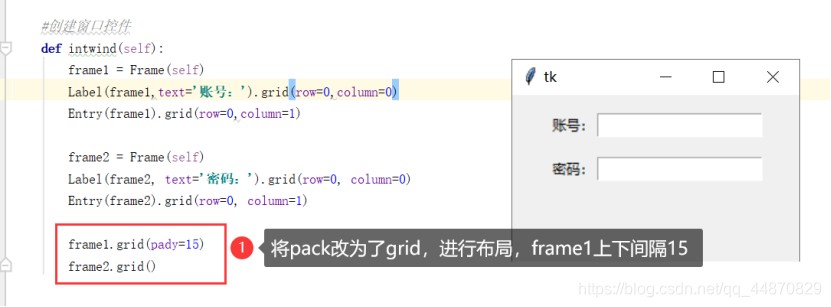 label(frame1,text='账号:').grid(row=0,column=0)