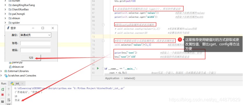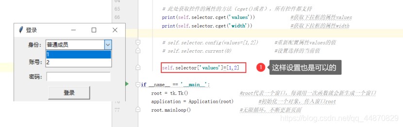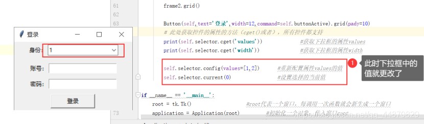 # self.selector.config(values=[1,2]) #重新配置属性values的值