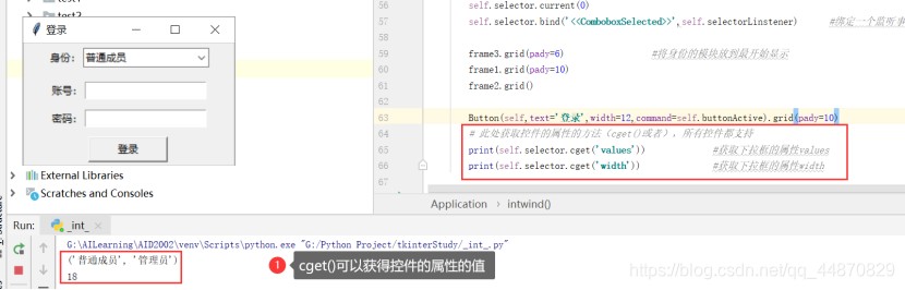 print(self.selector.cget('width')) #获取下拉框的属性width
