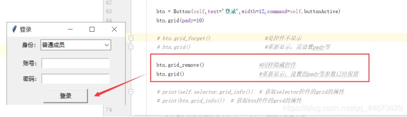 btn.grid_remove() #同样隐藏控件