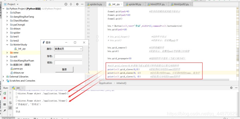 print(self.grid_slaves(1, 0)) #获取第1行0列的frame的控件