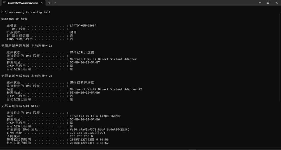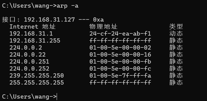 arp -d *清空缓存(windows)- 如果怀疑arp攻击,用防arp工具或绑定静态arp。