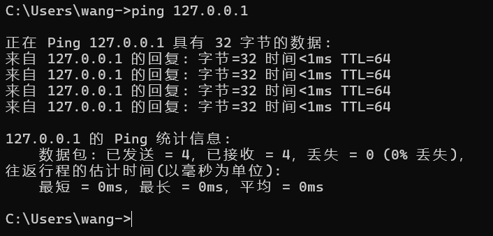 ping 127.0.0.1(测试tcp/ip栈是否正常)