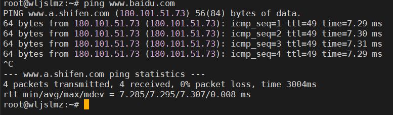 ping -t持续ping(ctrl+c停止)ping -n 100发送100个包,查看丢包率