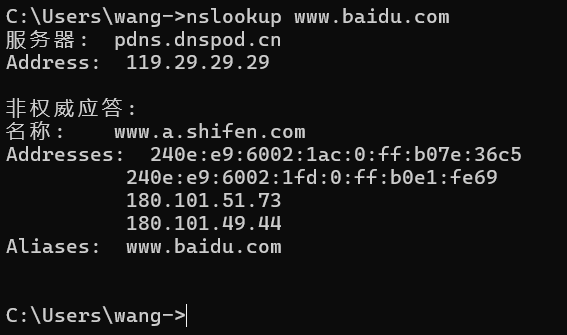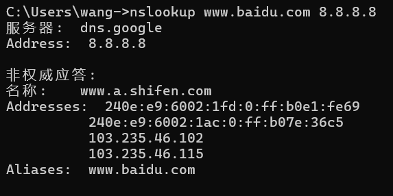 nslookup www.baidu.com 8.8.8.8指定dns服务器