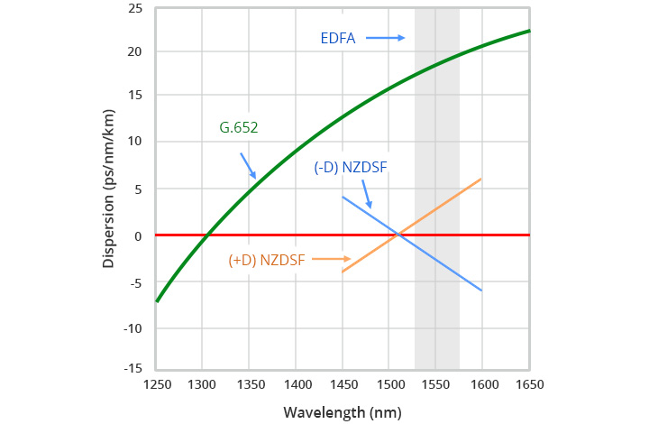 g.655:非零色散位移(nzdsf),小非零色散,抑制非线性,支持dwdm长距骨干/海缆。