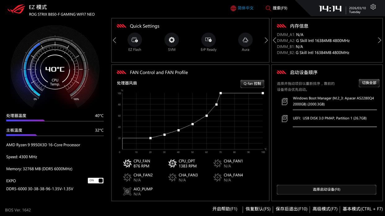 虽然这是一款偏向性价比的b850主板,但考虑到rog strix b850-f gaming wifi7 neo的配置,我们也使用了amd锐龙9 9950x3d处理器和rtx 5090d显卡这样的顶级硬件组合。游戏测试部分搭配ddr5 6000的内存,而后面的高频内存体验单独使用ddr5 8000内存。