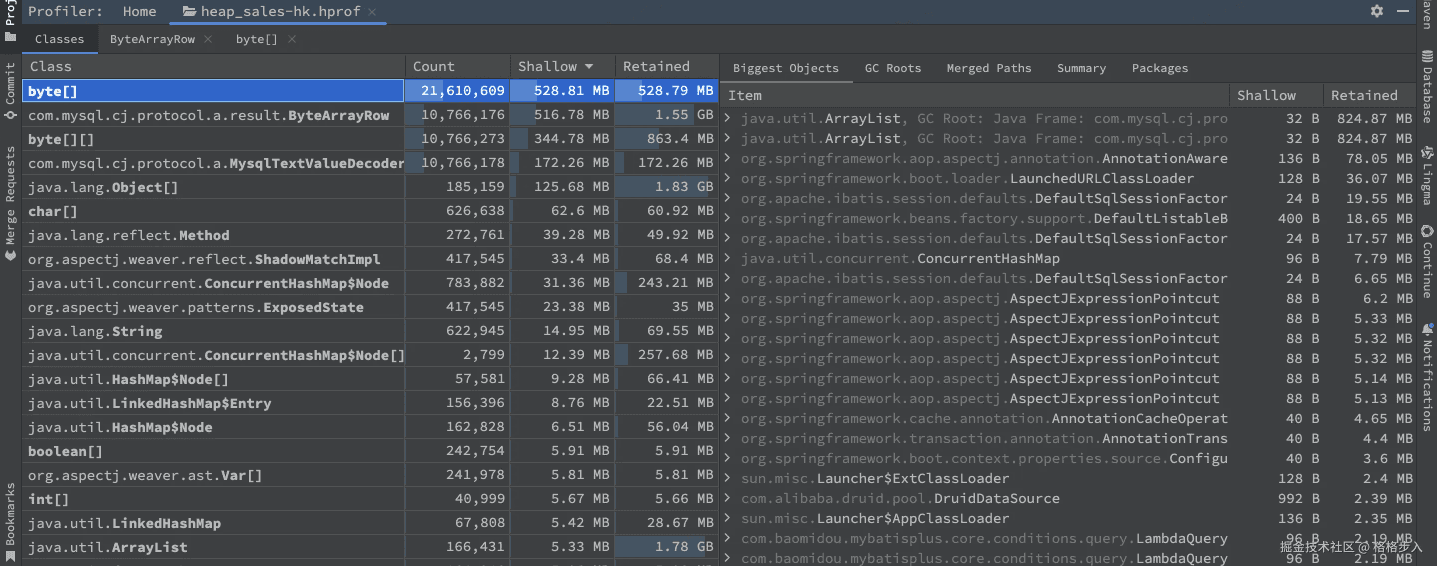 分析工具:使用的是 idea 自带的 profiler