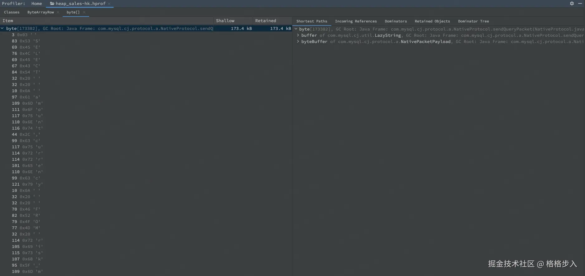 com.mysql.cj.protocol.a.nativeprotocol类的sendquerypacket方法(第 951 行)中。 - 因为它在栈上被引用,所以 gc 无法回收它,直到这个方法执行结束并且栈帧被销毁。