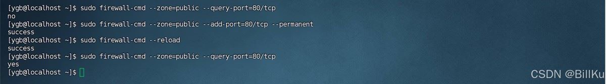 sudo firewall-cmd --zone=public --query-port=80/tcp