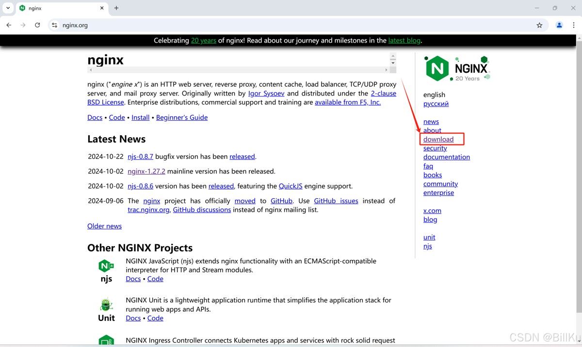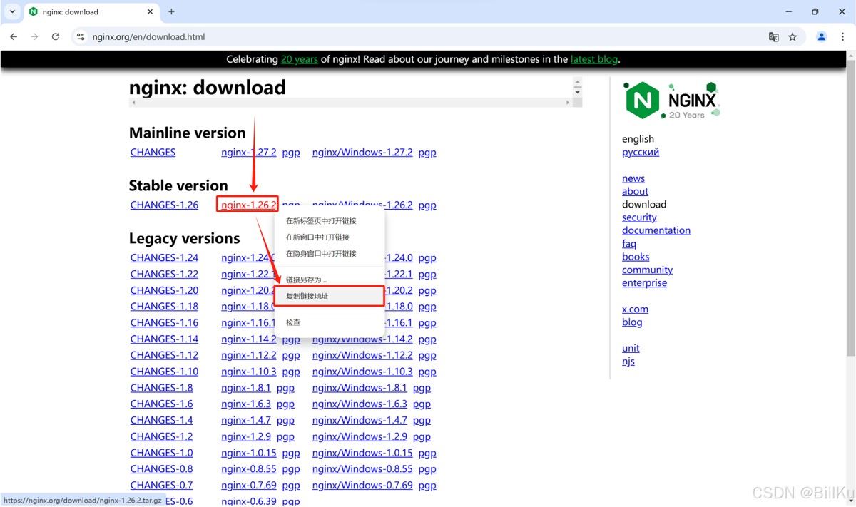 获取下载地址:https://nginx.org/download/nginx-1.26.2.tar.gz