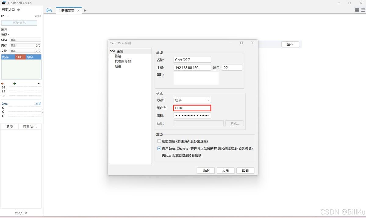 使用finalshell远程登录工具,并且使用 root 用户连接登录(注意这里说的root用户连接登录是指这样的)