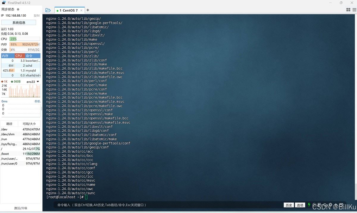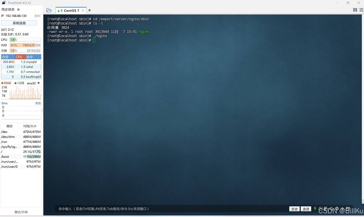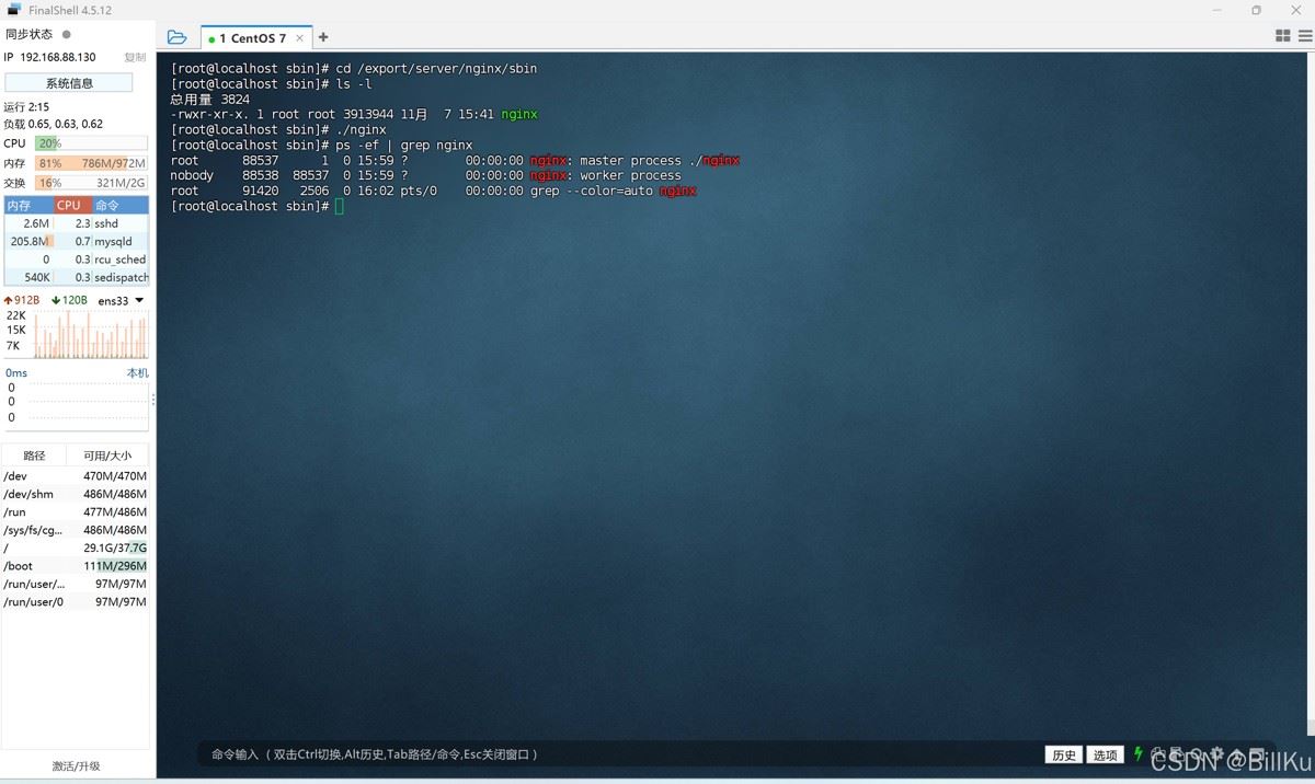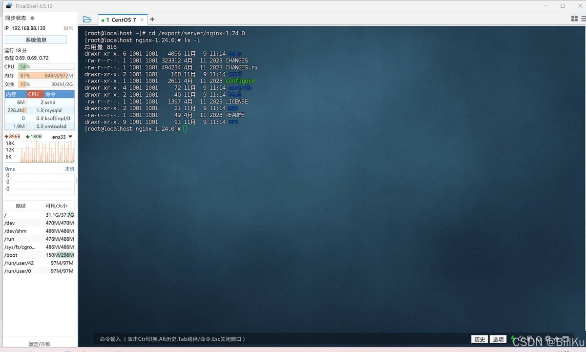 查看安装后的情况,目录 /export/server 中多了 nginx 目录
