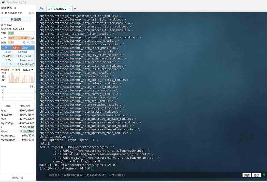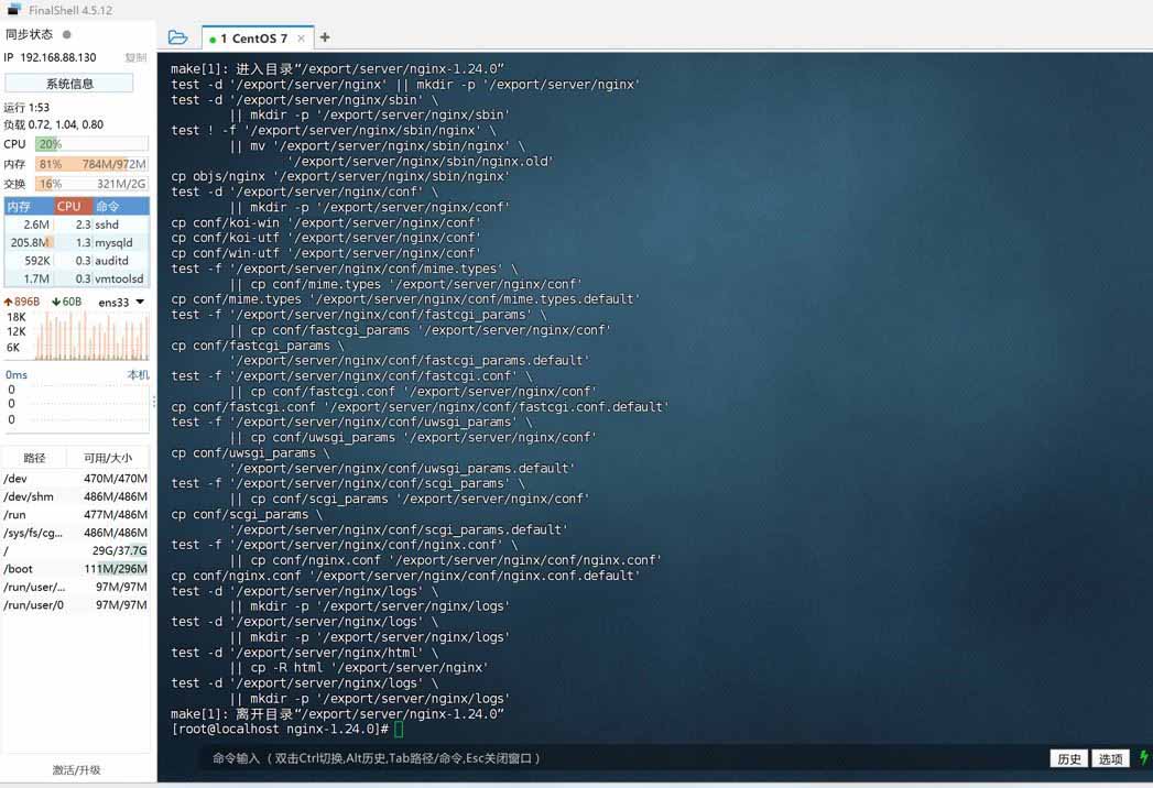 执行 make 和 make install 命令进行编译安装