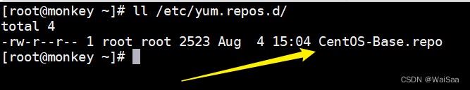 /etc/yum.repos.d/目录下,文件扩展名为".repo"(只要扩展名为 ".repo" 的文件都是 yum 源的配置文件); - 通常情况下