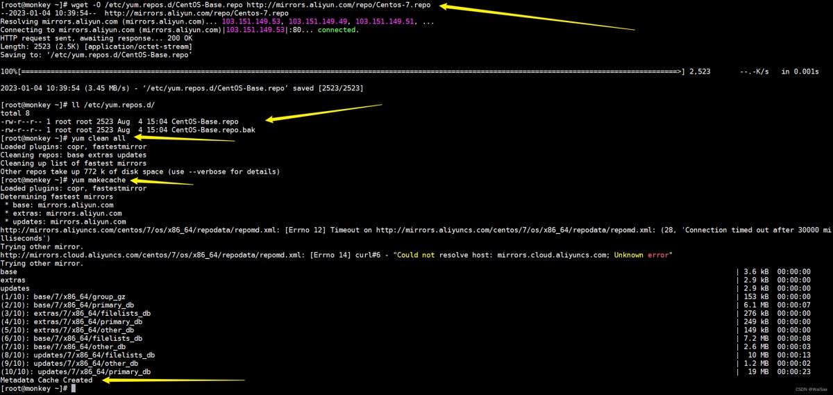wget -o /etc/yum.repos.d/centos-base.repo http://mirrors.aliyun.com/repo/centos-7.repo