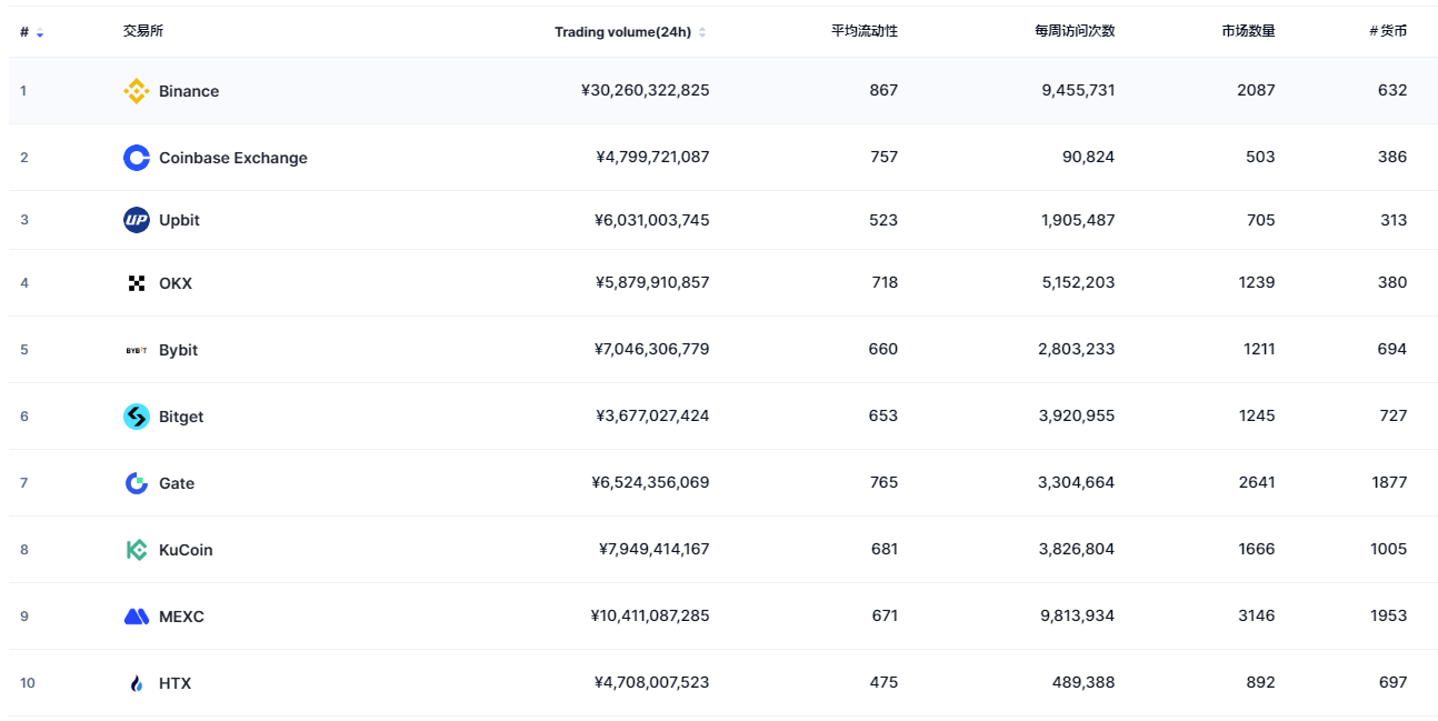 | 1 | binance | ¥30,260,322,825 | 867 | 9,455,731 | 2087 | 632 | ars, aud, brl and +86 more |
