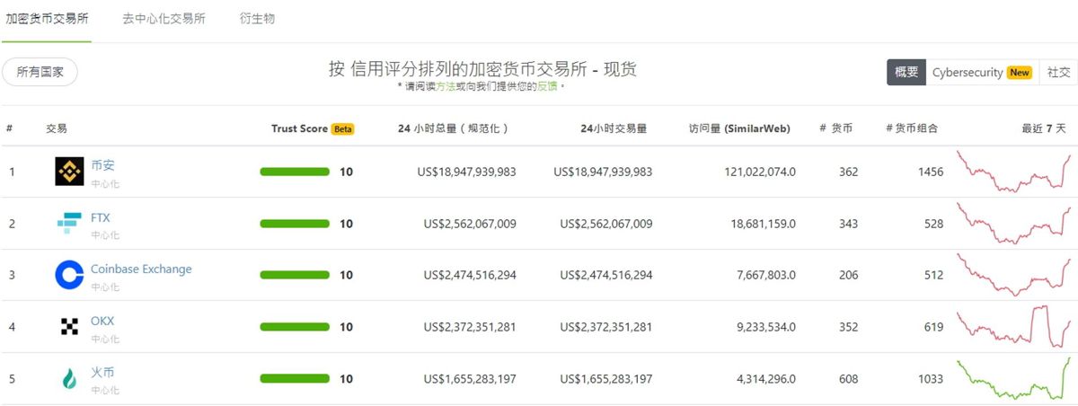 资料来源: https://www.coingecko.com/zh-tw/交易平台