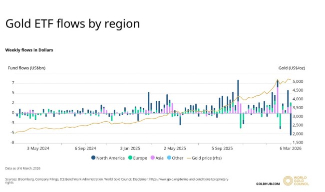 黄金etf资金流。来源:世界黄金协会