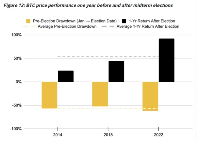 比特币在中期选举前后一年的收益率。来源:币安研究院