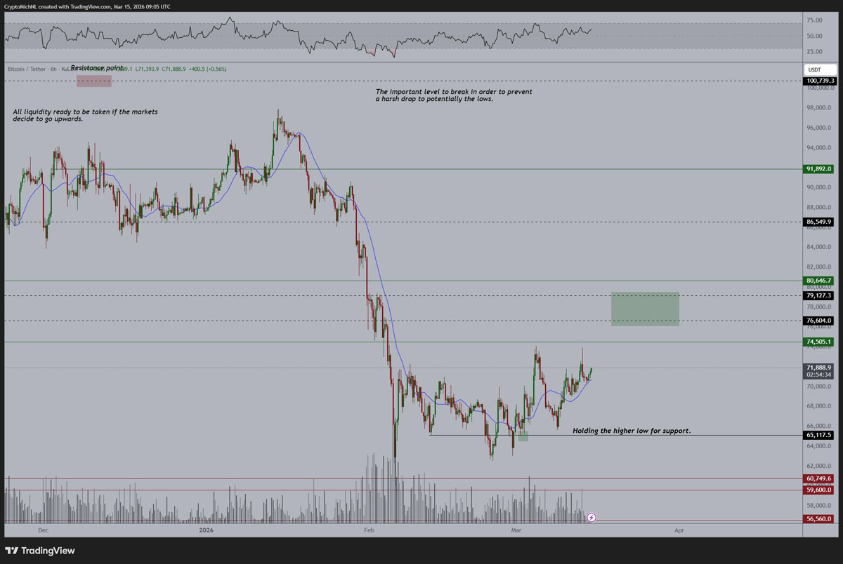 btc/usdt 六小时图。资料来源:michaël van de poppe/x