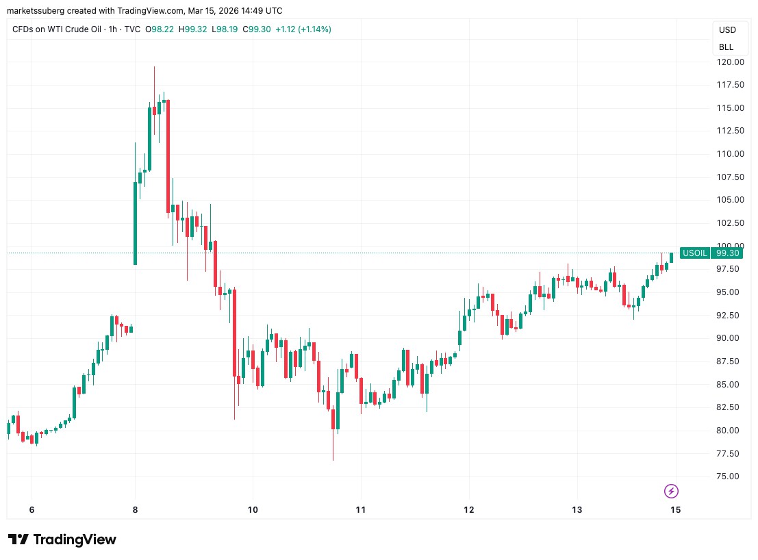 wti 原油本周结束时试图重温每桶 100 美元,全球石油供应冲击仍在持续。