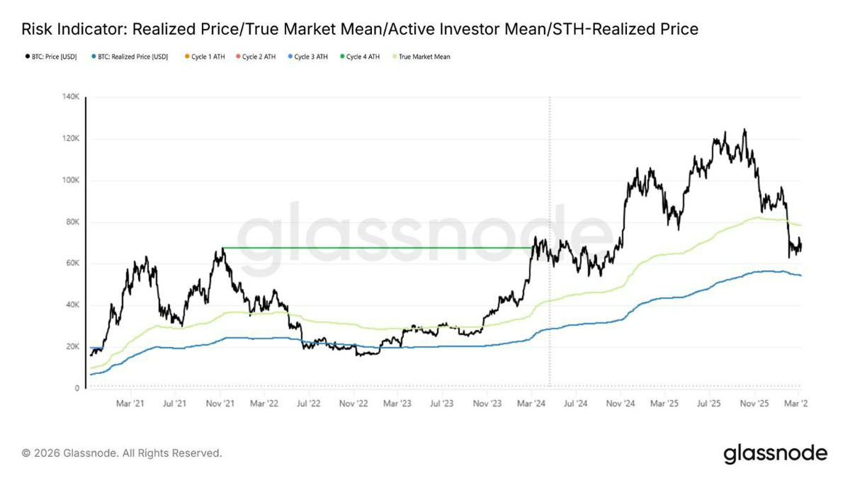 doops 确定了比特币的中期交易区间,边界有两个关键:真实市场均值为 78,400 美元,以及当前供应的总实现价格为 54,400 美元。