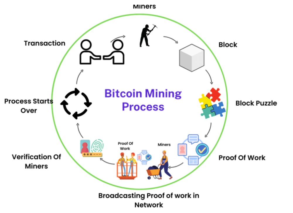 加密货币挖矿的运作原理是让计算机竞争解决一种称为工作量证明(proof of work)的密码学难题。矿工从内存池(mempool)中收集待处理的交易,构建候选区块,然后重复用不同的随机数(nonce)值对区块数据进行哈希运算,直到产生一个符合网络当前难度目标的输出。