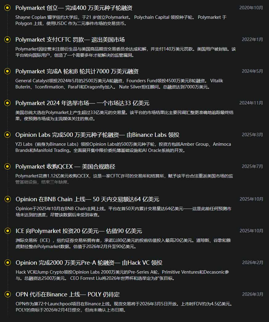 opn于2026年3月5日在binance上市,fdv为4.5亿美元。截至2026年3月,polymarket团队已确认poly,但尚未推出。
