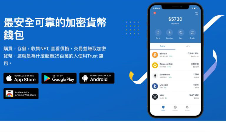 并且trust wallet 钱包支援超过65 种区块链网路,非常全面,让使用者方便地管理多种加密货币。