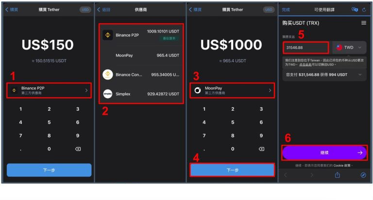 - 信用卡或金融卡购买加密货币:相当于转台币购买。