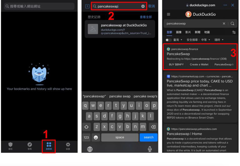 - 进入defi 网站。 trust wallet 使用duckduckgo 搜寻引擎,提供加密和无广告的搜寻结果,不会跟踪用户。