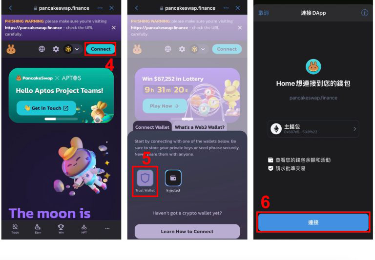 - wallet connect:透过扫描qr code 将trust wallet 与其他defi 和dapps 连结,无须个人信息,可降低资料外泄风险。
