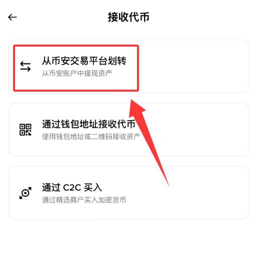 选择选择【从币安交易平台划转】。