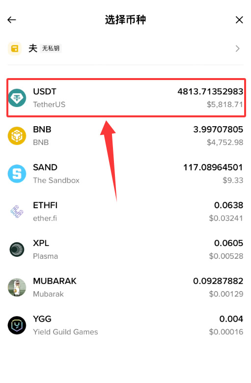币种选择usdt或您需要转入的数字货币