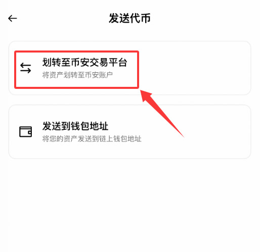 2、选择【划转至币安交易平台】。