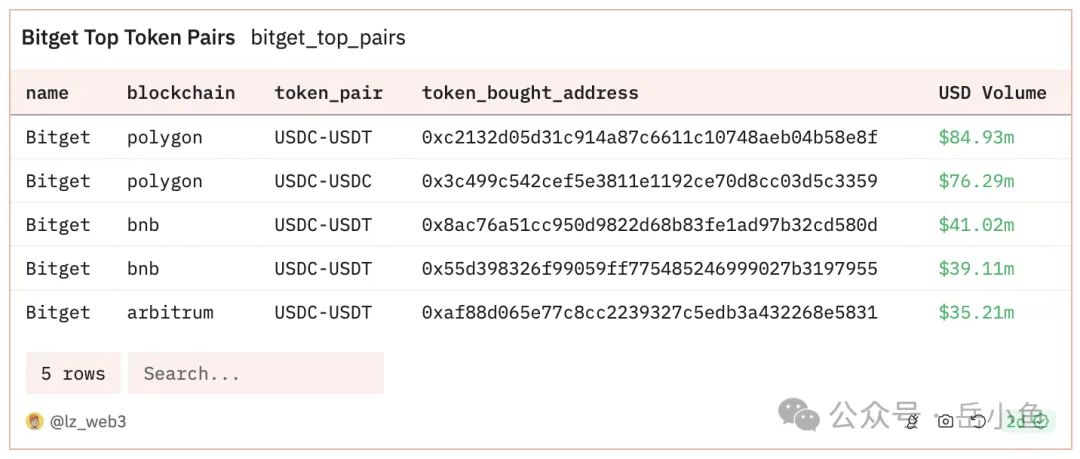 具体看bitget钱包的交易数据,基本都是gas费很低的几条链上的稳定币交易,说明很多用户在通过刷交易量来获取积分。