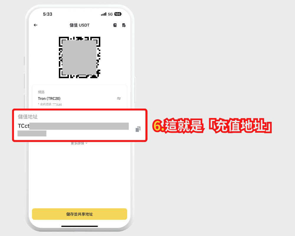 最后就可以看到这个加密货币的「储值/充值地址」了,你或其他人都可以将加密货币发送到这个地址上,旁边有按钮可以点击复制,也可以把地址制作成一张 qr code。