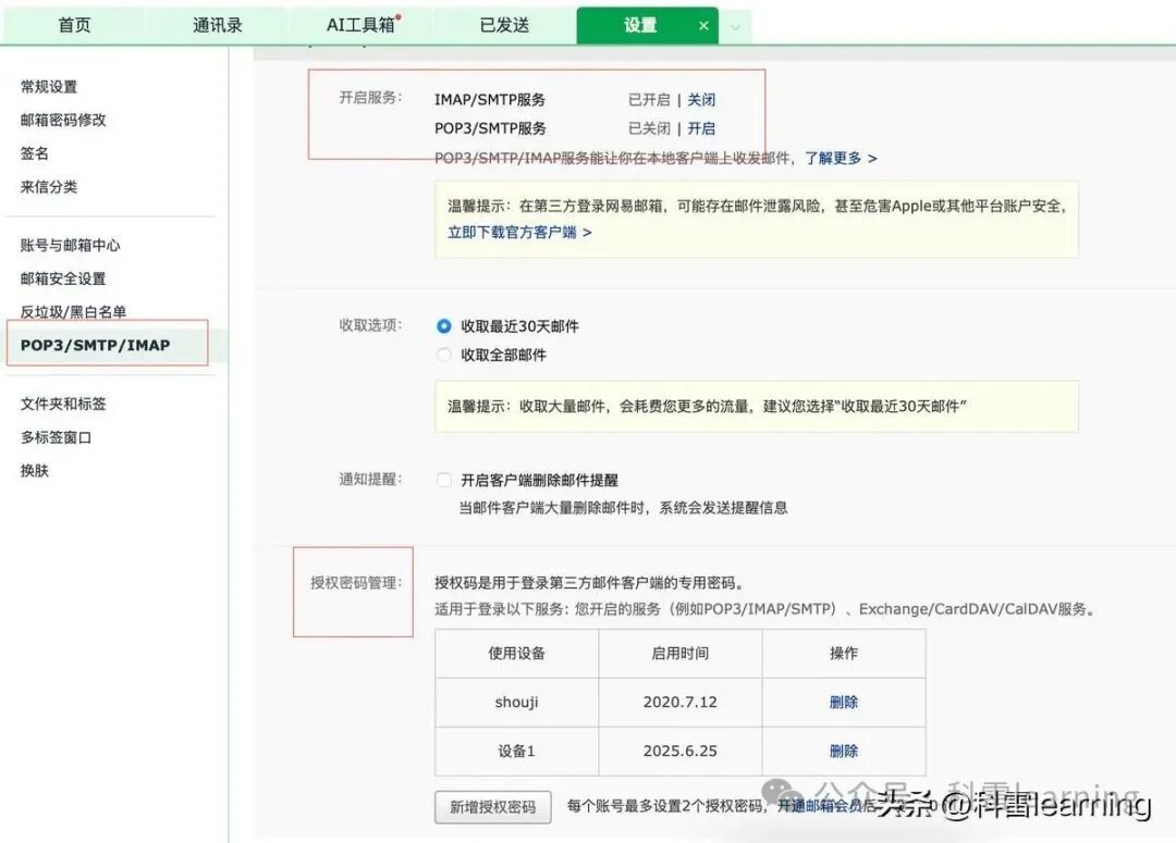 以上是qq邮箱,126邮箱和163邮箱在设置中打开服务的截图,供大家参考。
