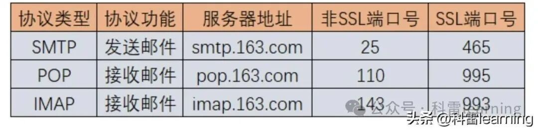 打开服务后,不同邮箱对应的服务地址和端口如下: