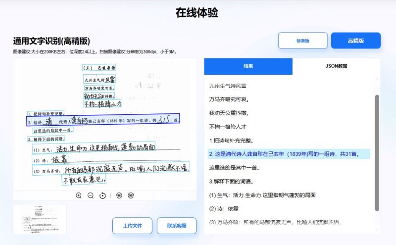 对身份证、发票等图片按区域识别,可提高精度。